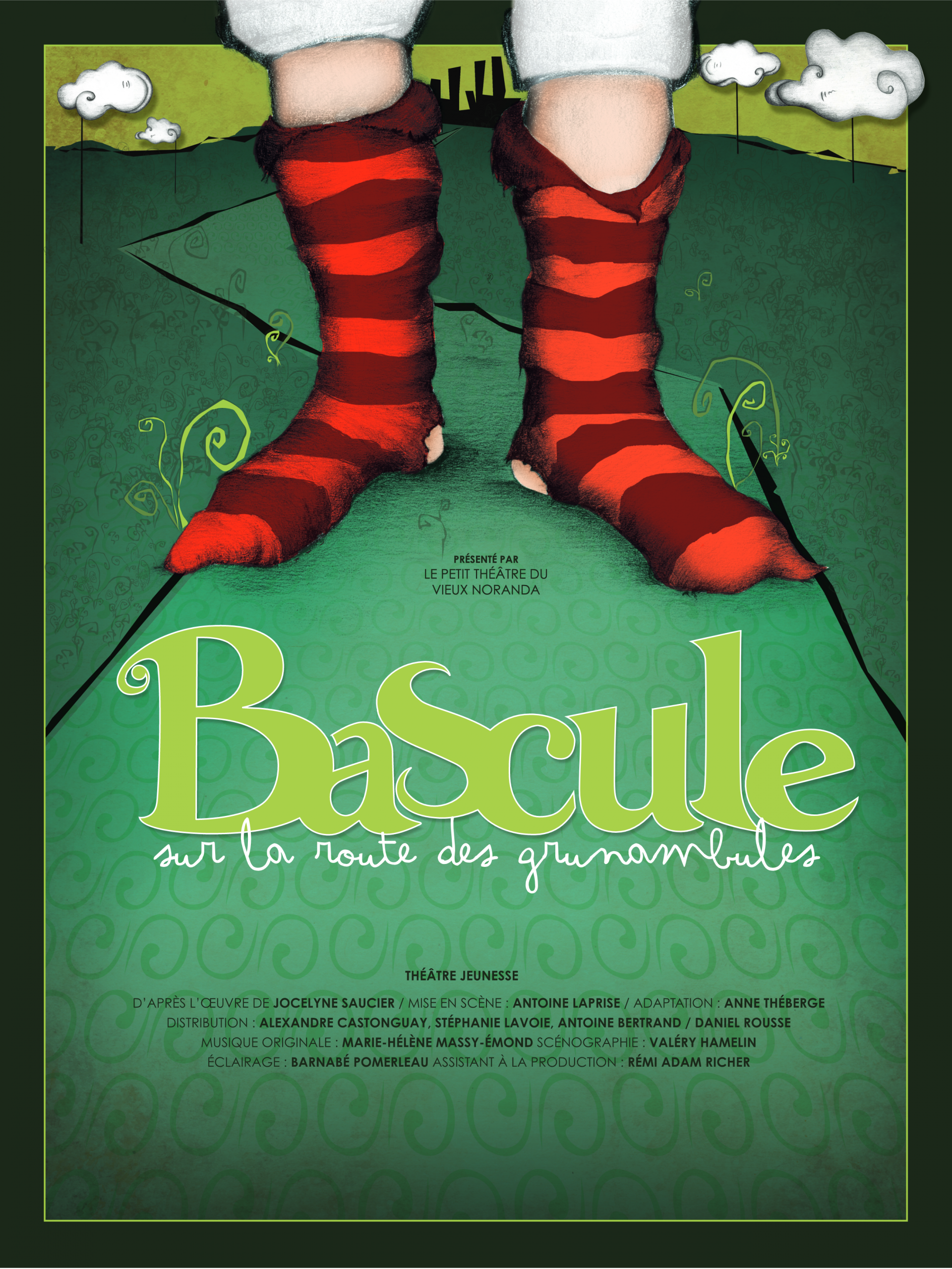 Adapté pour le théâtre, à partir du roman de Jocelyne Saucier, par Anne Théberge, Bascule se décompose en plusieurs épisodes. Le premier, Bascule sur la route de l’Ouest, est présenté au Petit Théâtre en 2009 et l’année suivante, en 2010, c’est Bascule sur la route des Grunambules qui a rassemblé les enfants dans la salle du Vieux Noranda.