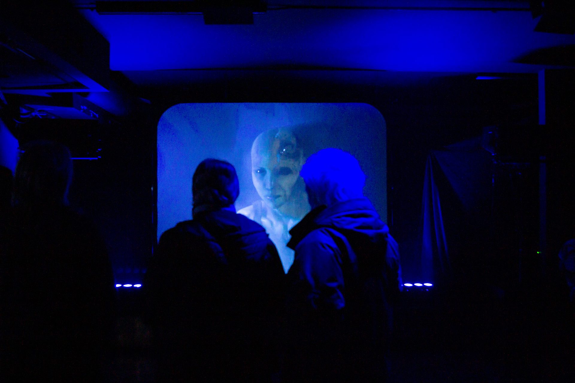 Depuis maintenant six ans, le Petit Théâtre et le département de création numérique de l’UQAT collaborent pour offrir aux étudiant·es de première année de maîtrise une semaine de recherche et de création en lien avec les technologies numériques avec la participation d’artistes professionnel·les. Le laboratoire c’est l’occasion pour les élèves de vivre une expérience professionnelle créative dans un lieu culturel intégrant les technologies dans les arts vivants et pour les artistes invité·es d’ouvrir leurs horizons et leurs perspectives artistiques vers les outils technologiques et de les intégrer dans leur pratique. Cette année, c’est une conteuse et marionnettiste, Camille Deslauriers Ménard, qui a été choisie pour rejoindre l’aventure et travailler en collaboration avec les étudiant·es pour imaginer et créer une expérience immersive sur le thème choisi.