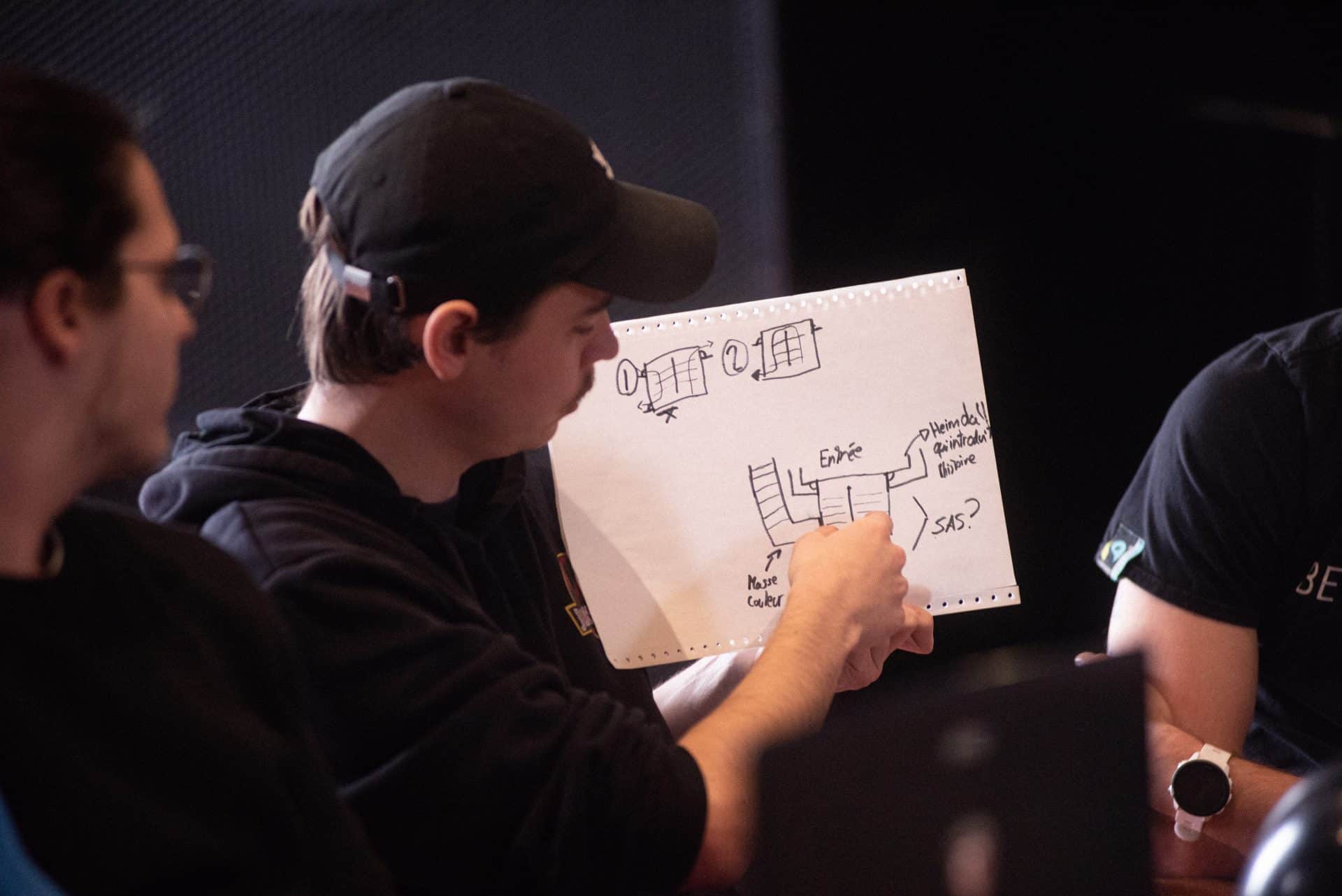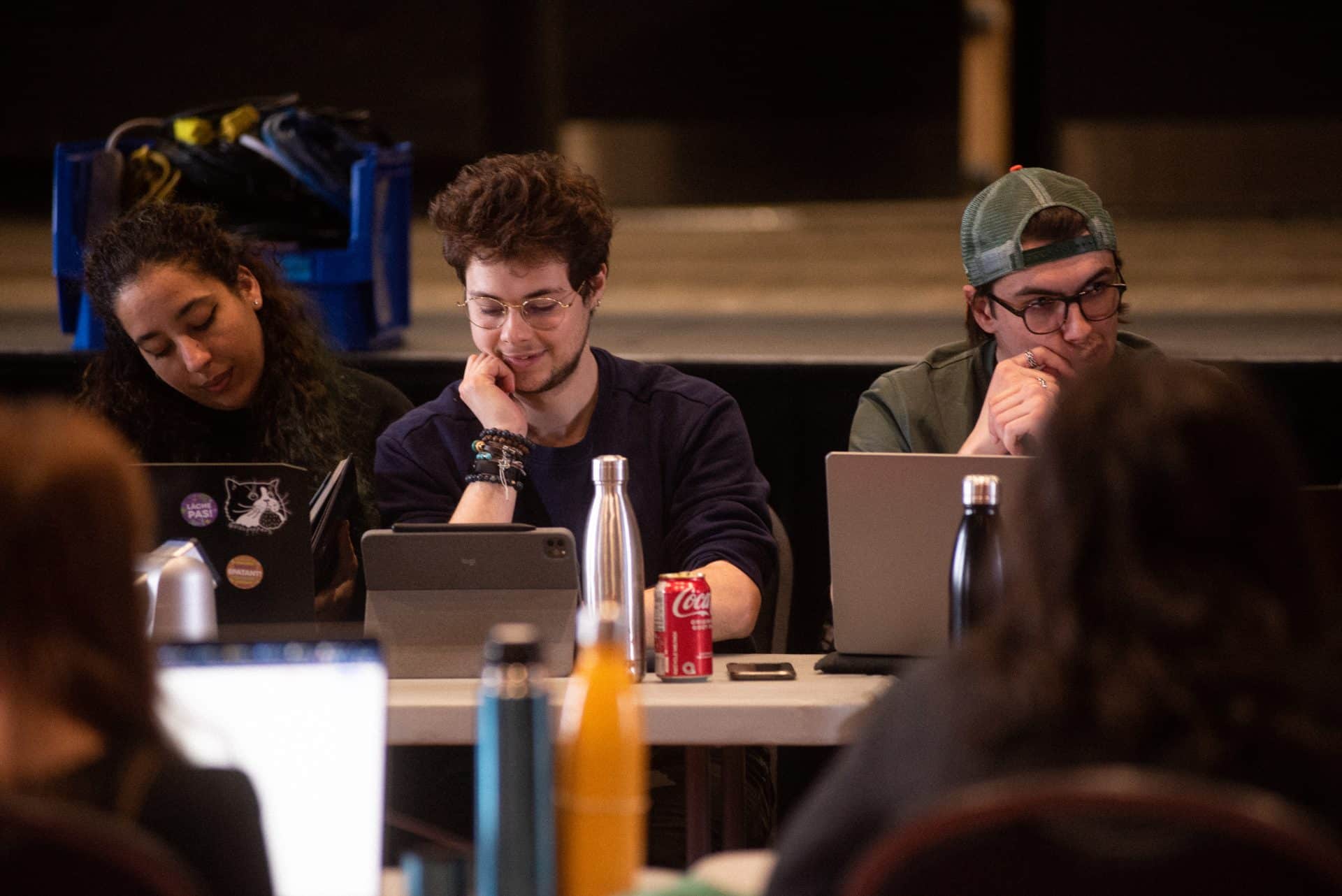 Durant toute une semaine, les idées ont fusé, parfois au-delà de la faisabilité réelle d’une résidence de six jours, les étudiant·es ont sorti du matériel, dessiné, découpé, assemblé, codé, enregistré, etc. Les un·es se sont appuyé·es sur leurs connaissances pour apporter leur expertise au projet, d’autres ont voulu développer leurs compétences en apprenant à utiliser de nouveaux outils, le tout supervisé par l’équipe de l’UQAT et du Petit Théâtre et dans une ambiance d’effervescence créative.