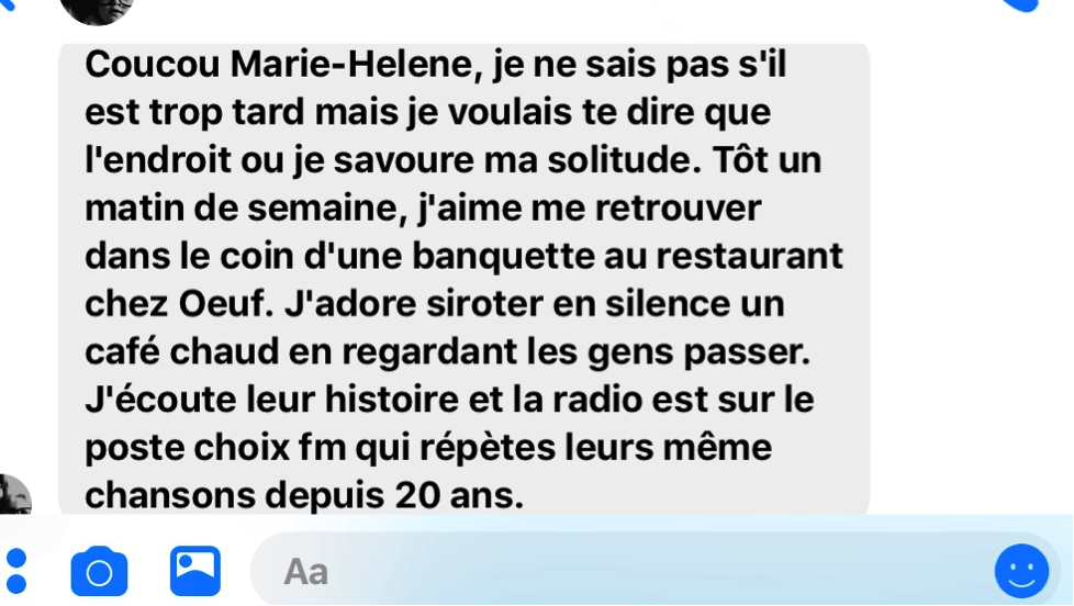 Chez Œufs, Caroline sirote sa solitude avec une crème.